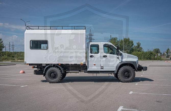 Представляем Вам специальный автомобиль для автономного нахождения в труднодоступной местности. В качестве базового ТС был использован полноприводный грузовой внедорожник Садко Некст С42А43. Садко Некст оснащён дизельным двигателем, предпусковым подогревателем, системой помощи ASR, ESP, наличие ГУР, односкатная ошиновка вкупе с подключаемым полным приводом дает автомобилю максимальную проходимость. Сдвоенная кабина на 7 посадочных мест в трехдверном исполнении оснащена ремнями безопасности и системой отопления, а по запросу и кондиционирования. Каркасный фургон кунгового типа подготовлен под эксплуатацию в северных региона, произведено утепление, установлен автономный отопитель. Оснащение кунга производится по желанию заказчика, в данном случае, автомобиль был оборудован спальными местами купейного типа (2 рундука+2 откидные полки), откидным столиком, переговорным устройством. Крыша фургона кунга на базе Садко Некст С42А43 была оборудована багажником с лестницей на задней двери. На предприятии ООО «ЕТКС» Вы можете заказать изготовление фургона кунга или прямоугольной формы, в нужной Вам комплектации! Позвоните нам или оставьте заявку и получите предложение на автомобиль для геологических исследований на выгодных условиях!